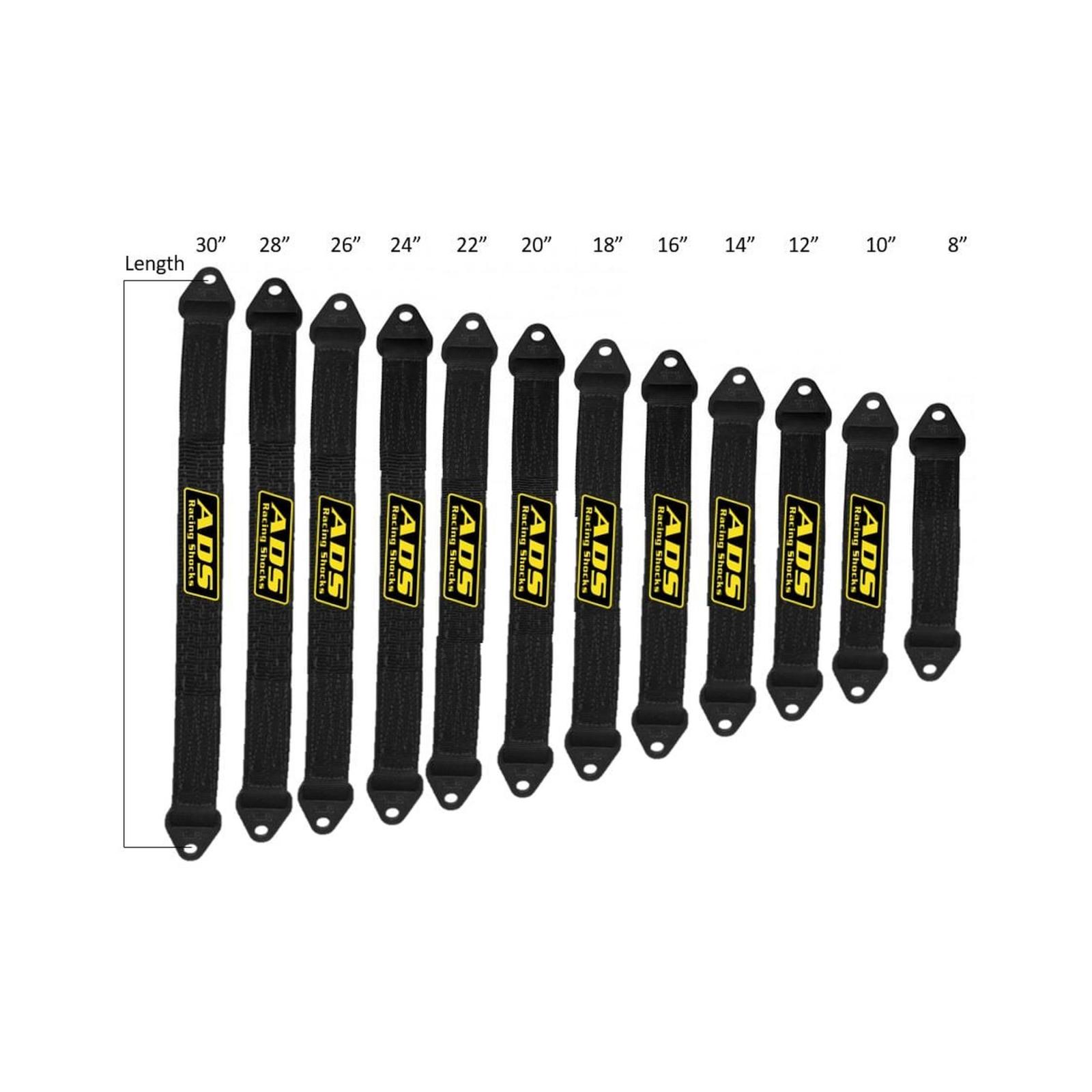 Protect your suspension from drooping out too far and damaging your components with ADS limit straps. Available in 2-inch increments from 8 to 30-inches, they feature 4130 chromoly end pieces and are 100 percent made in USA mil-spec resin treated 7,000 pound nylon webbing.