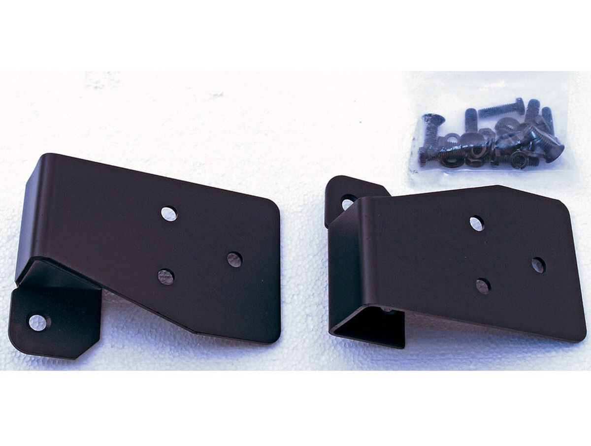 Allows for use of factory mirrors when the doors are removed. Each set of brackets attach to the vehicles windshield hinges using existing bolt holes.