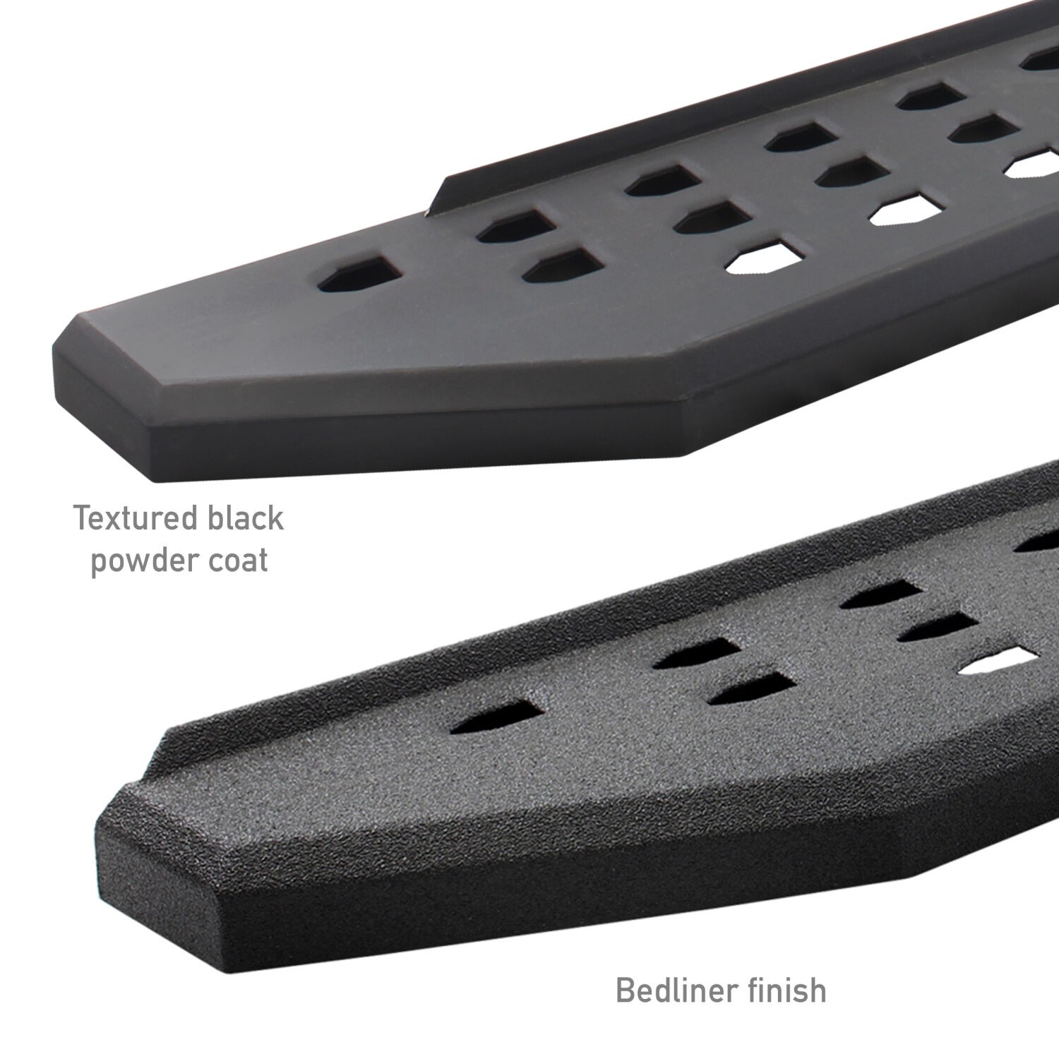 The legendary RB Series of cab length running boards from Go Rhino will make your truck, Jeep or SUV stand apart from the crowd. These, aggressive, stylish bolt-on side steps take their visual inspiration from the Ford Raptor but are made for more than just looks.