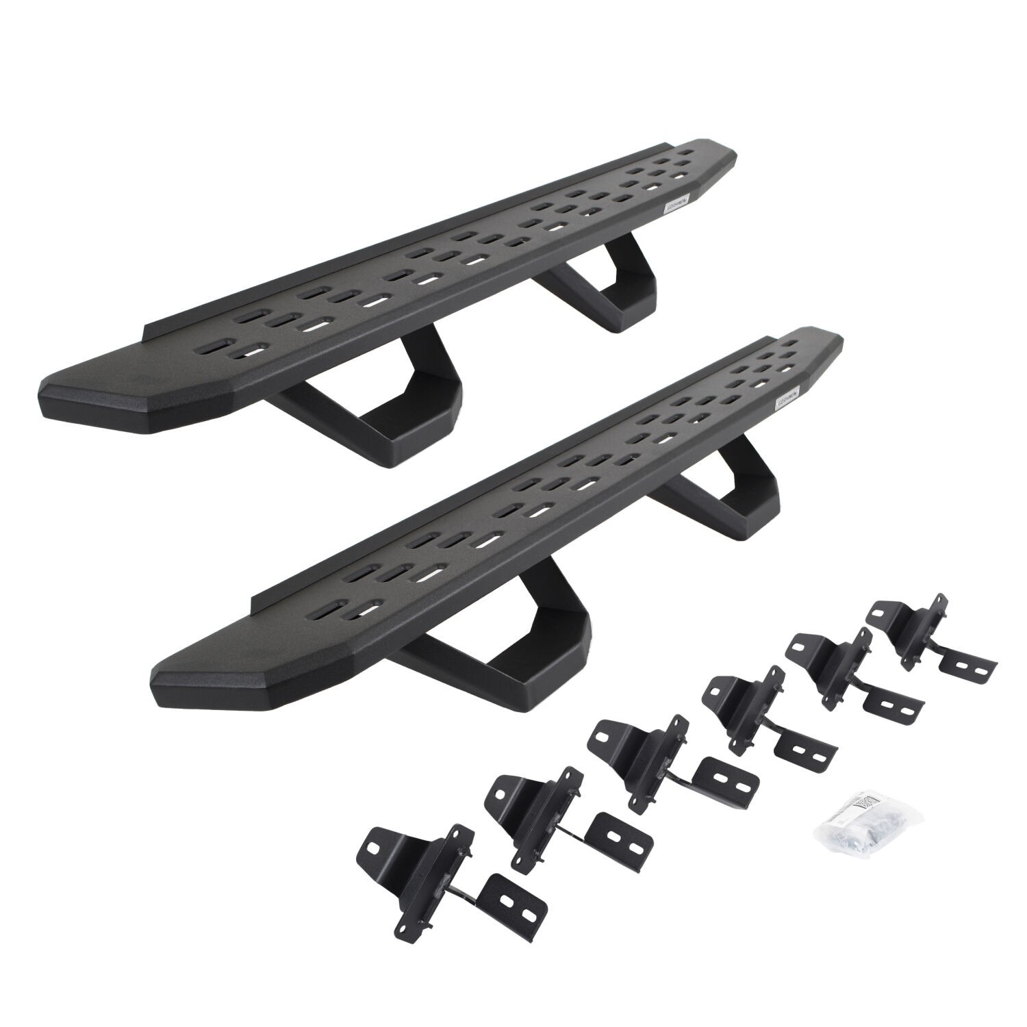 Meet the third edition of the legendary Go Rhino RB Series of running boards: the RB30. The RB30 is the next generation of Raptor-inspired design that will make your truck, Jeep, Bronco or SUV stand out from the crowd. With its aggressive, stylish appearance, this cab-length, bolt-on side step provides maximum traction aFeatures an open flow-through design that prevents mud, ice, and snow from accumulating.