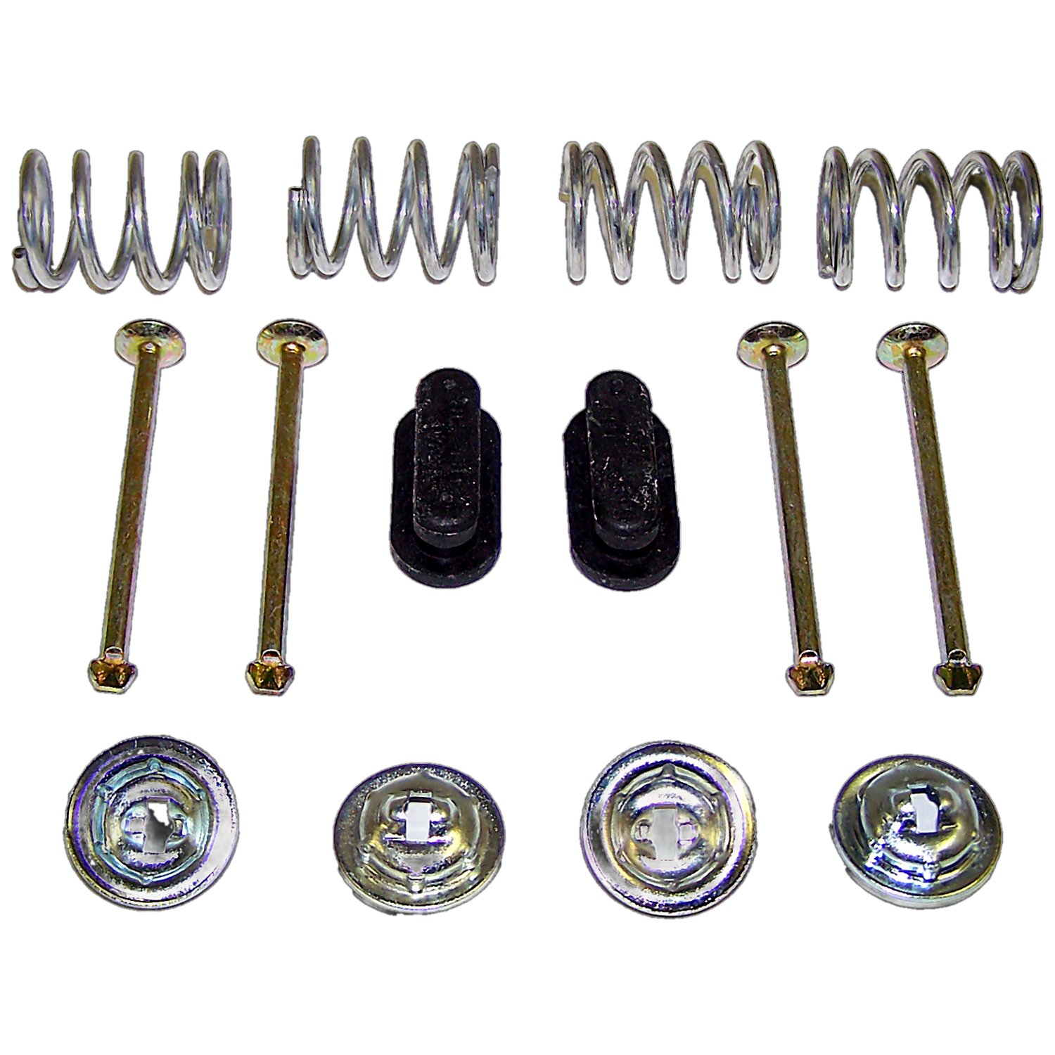 Rear Brake Shoe Hold Down Kit for 1990-2006 YJ, TJ Wrangler, 1990-2001 XJ Cherokee and MJ Comanche, All w/ 9 inch Rear Brakes, Left and Right, Includes Pins, Springs, Locks, and Adjusting Hole Plugs