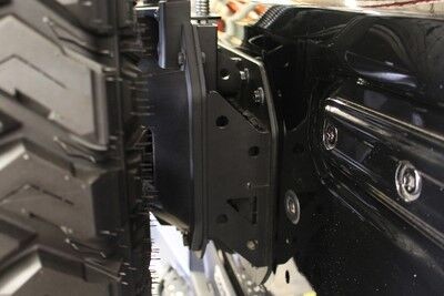 - Uses factory tire carrier by spacing it our 3 Inch and up 2 Inch for use with larger tires up to 40