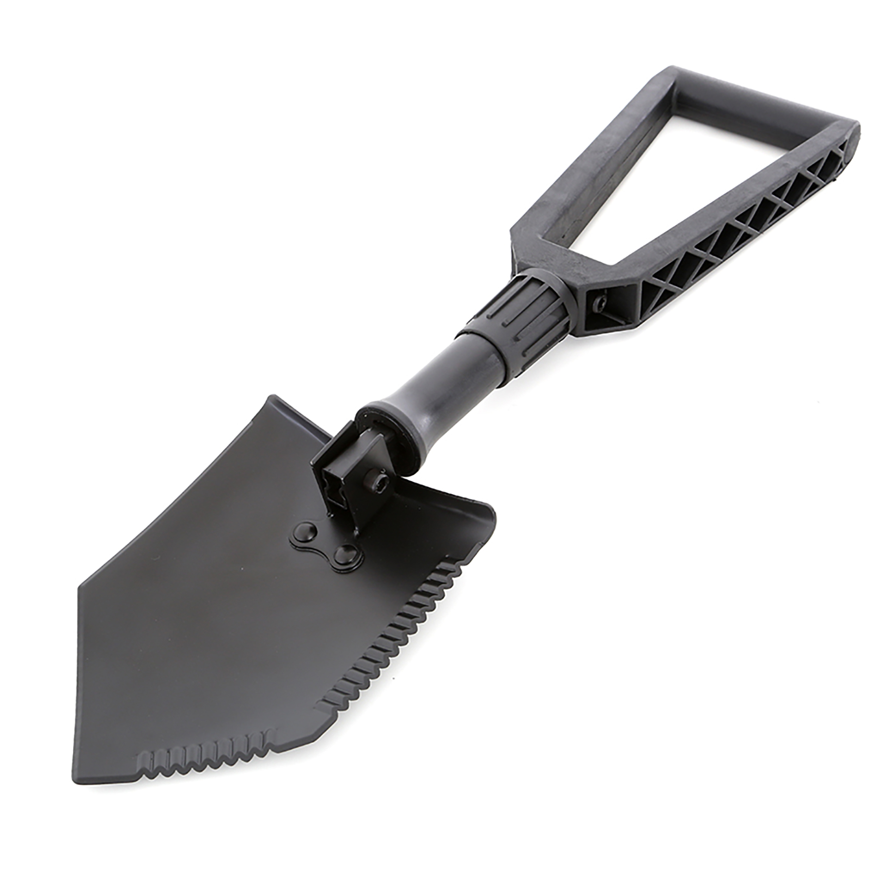 The Recovery Utility Tool (Rut) is a Fully Functional Collapsible Military Style Shovel with Easy Grip and Light Handle with Carbon Steel Blade that is Heat Treated for High Strength and Features Double Serrated Edges for Easy Digging or Cutting. The Heavy-Duty Black Powder Coated Body is 26 inchches When Open and Folds to a Mere 9 inchches.
