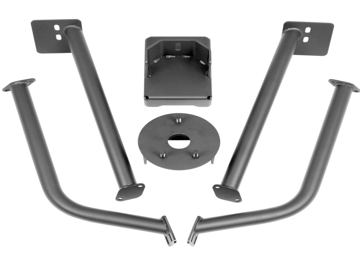The Rugged Ridge Bed Mount Spare Tire Carrier answers that nagging question on the lips of proud Gladiator owners everywhere- what to do with that over-sized spare While the factory spare is discretely tucked away under the JT's bed, outfitting your rig with 35 inch or larger tires will have you discovering the Gladiators departure angles to be comparable to an overloaded school bus. Bigger tires do get you over the big rocks, but your low-dangling spare will put an end to your fun in no time at all.