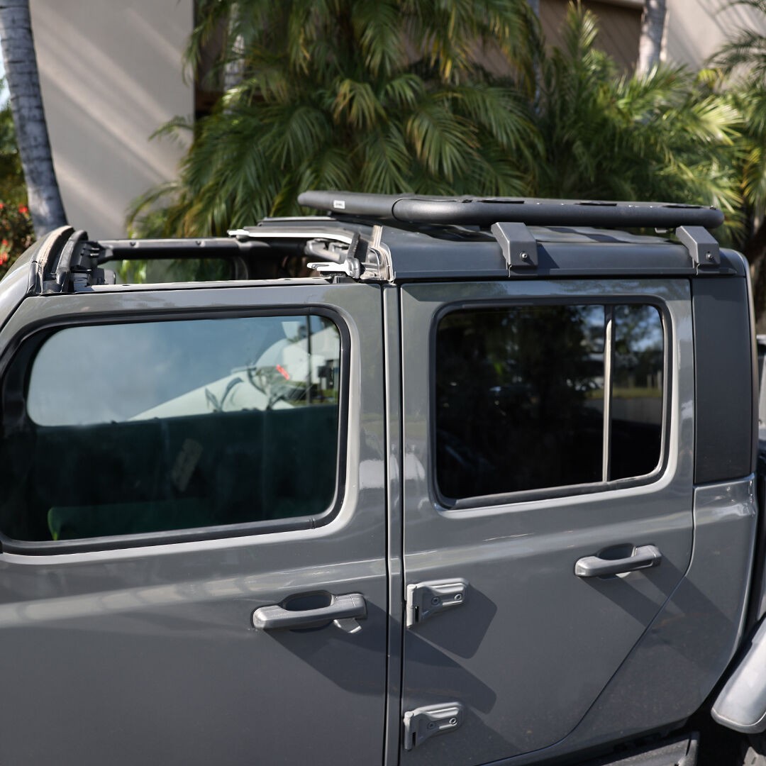 - Extruded aluminum cross bars include 4 channels to mount accessories using standard hardware