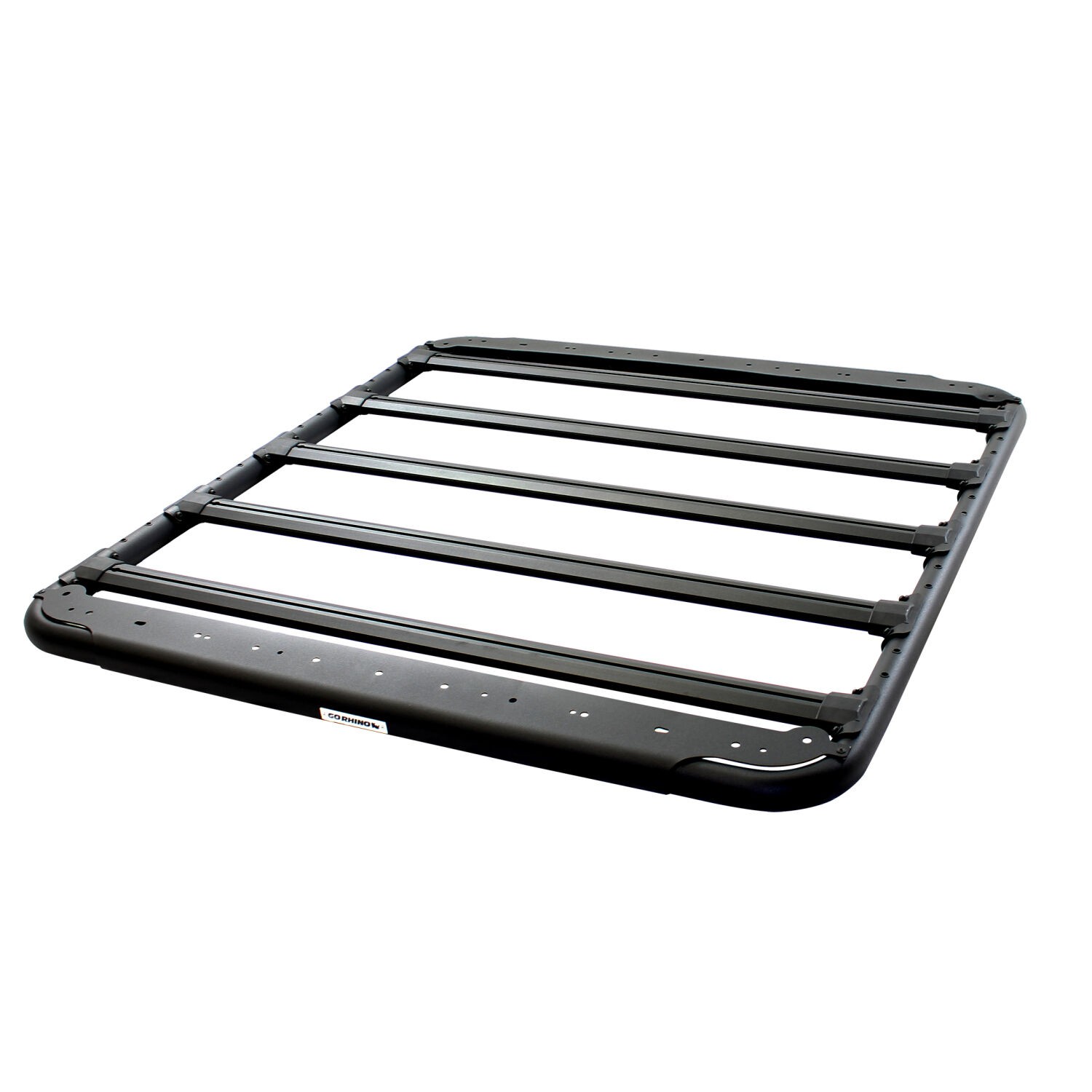 The SRM500 is equipped with Go Rhino's exclusive 4-CORE aluminum bars, the extruded track system that works with any 1/4x20 hex bolt and provides unlimited mounting options for gear and trail tools. The SRM500 is 52 inches wide, and 55 Inch front-to-back, and can be mounted on any vehicle's OE crossbars with the included Rhino Clamp system.