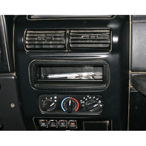 After pulling the stereo out to reinstall it in a secure Tuffy console, cover the leftover hole in the dash with a functional organization tray. Powder coated steel construction.