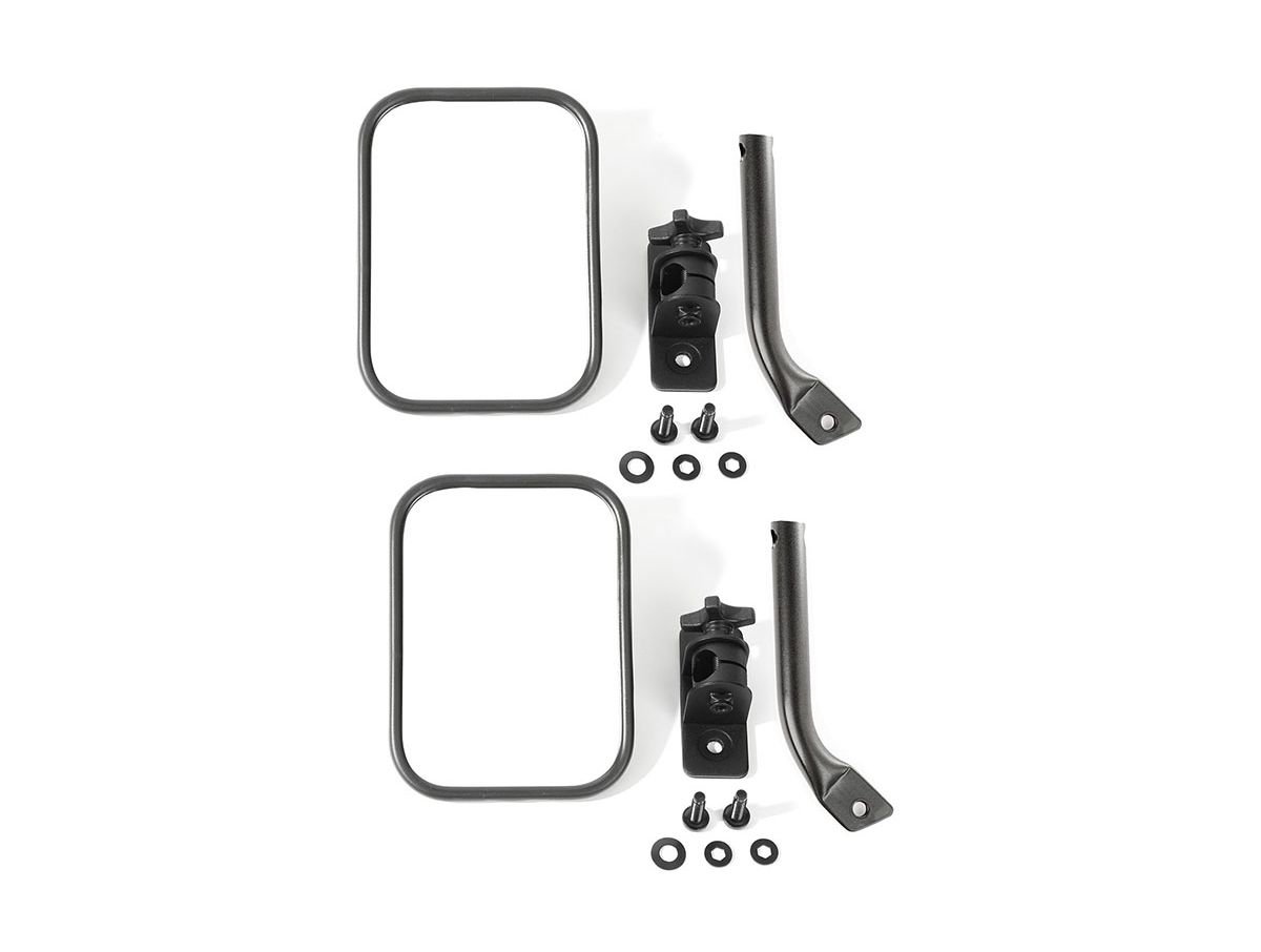 A convenient bolt-on mirror solution for when you want to leave the doors at home - also great with tube or safari doors. Includes a pair of mirror heads, mirror arms, mounting brackets, bushings, thumbscrews, gaskets and hardware.