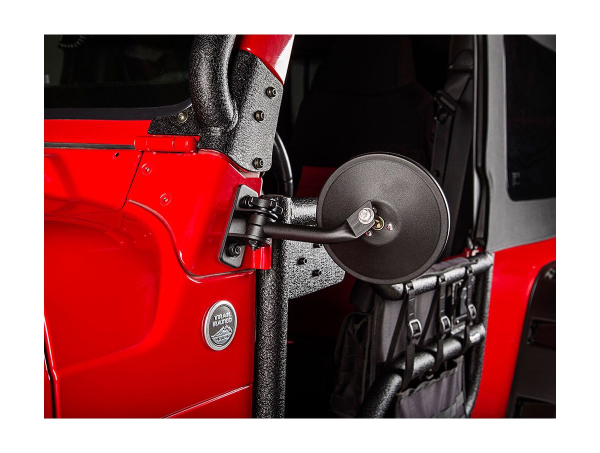 A convenient bolt-on mirror solution for when you want to leave the doors at home - also great with tube or safari doors. Includes mirror head, mirror arm, mounting bracket, bushing, thumbscrew, gasket and hardware.