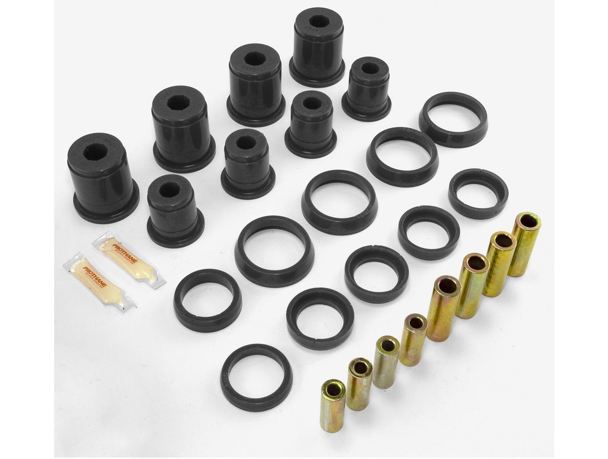 In this Black control arm bushing kit, polyurethane based suspension, driveline and chassis components have been designed as an upgrade to the soft factory rubber components. Precision fabrication ensures a perfect fit.