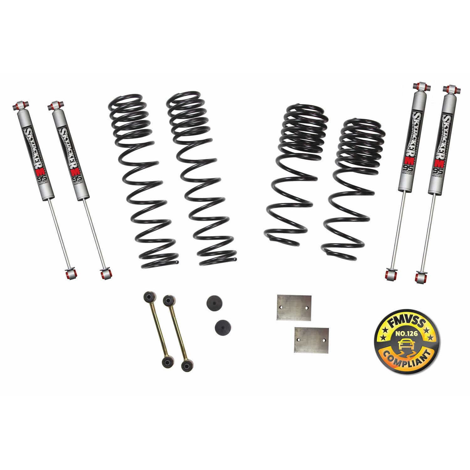 Suspension Lift Kit w/Shock 1-1.5 Inch Lift 18-19 Jeep Wrangler Unlimited Rubicon Incl. Frt. And Rear Dual Rate/Long Travel Series Coil Springs Extended Sway Bar End Links Grade 8 Mounting Hdwr M95 Monotube Shocks Skyjacker