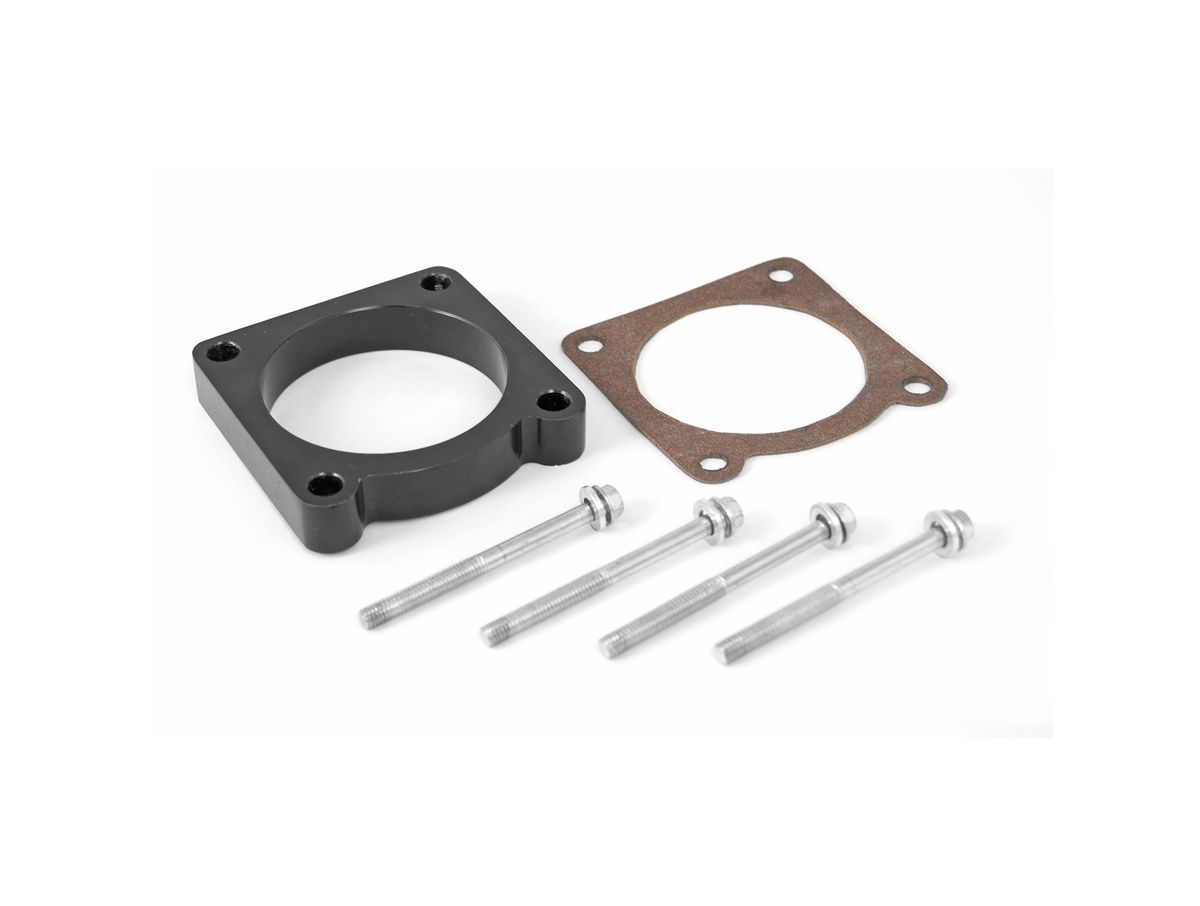 The Rugged Ridge Throttle Body Spacer raises the throttle body 1/2 inch above the intake manifold. The additional space helps optimize power and performance by drawing in colder denser air.