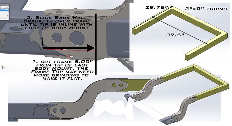 TJ/YJ Back Half Frame Kit. Our Back Half Frame Kit is designed to allow TJ, LJ, and YJ owners to get rid of the clunky back half of their stock frame to allow clearance For coilovers and/or larger heavy duty axles. By narrowing the frame, you are able to run coil overs without notching your factory frame and weakening it. Plus since it doesn't hang as low as the factory frame Inch the back, you can do a stretch with that one Ton axle and have better up-travel. This DIY Kit includes only the transition pieces because we know you can get straight pieces of 2 inch x 3 inch tube locally, so why make you pay For that and shipping For it. But these aren't just some generic pieces of steel that make the transition. This Kit has been specifically designed to compliment the factory frame, yet look distinctly hardcore. It is also engineered For maximum strength and Easy assembly with jig and key holes so you can't put it together wrong. Just another example of the Fusion Of Form And Function from Artec.