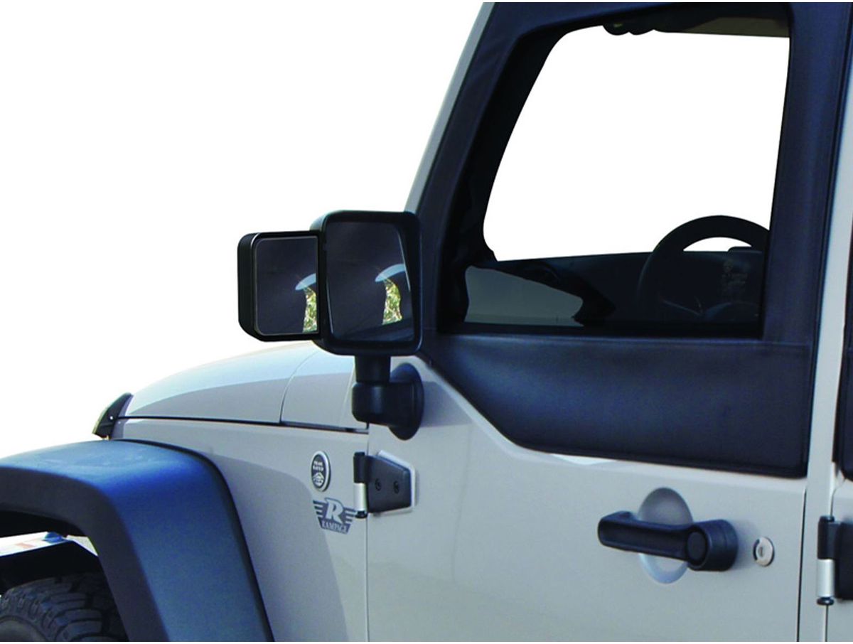 Towing Mirror Extensions for 2007-2018 Jeep Wrangler Pair, Black Rampage