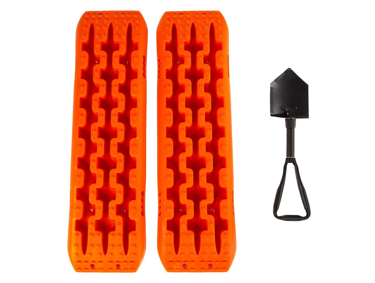 Sand, snow and mud are simply no match for their ultra-aggressive design, as the board's built-in cleats deliver a giant dose of traction when and where it's needed most. The boards are cast in bright color for maximum visibility, engineered to withstand pressures up to 20,000 lbs. and paired with a handy tri-fold shovel for ease of placement.