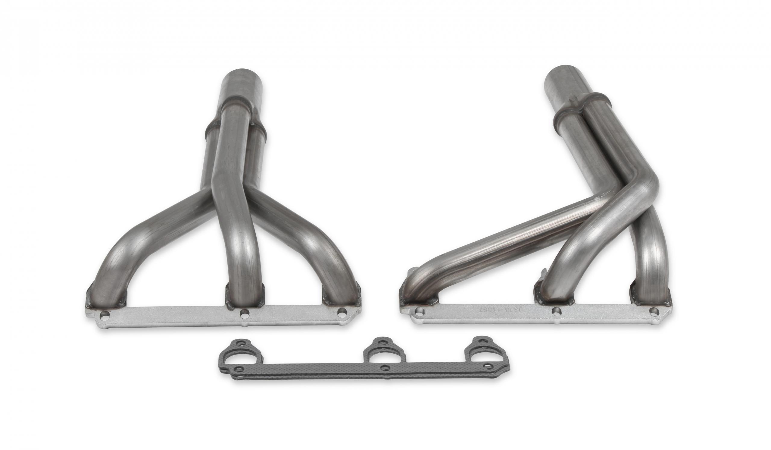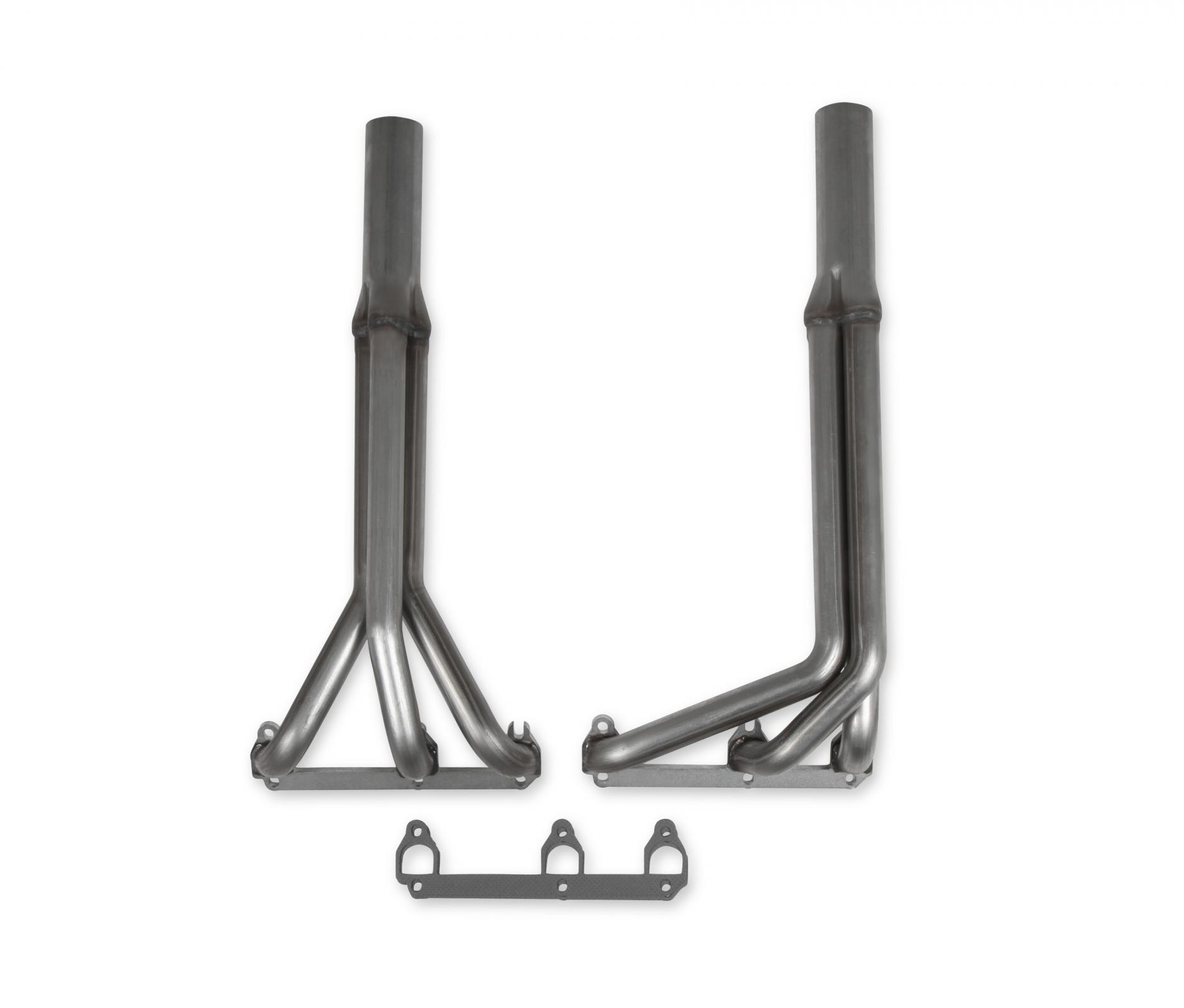 Features and Benefits:- Mandrel bent tubes provide consistent tubing diameters for better exhaust pulse flow and improved performance 1-1/2 in. and 1-5/8 in. primary diameters available for increased exhaust flow and improved throttle response Heavy duty 16-gauge 409 Stainless Steel used for strength and durability 10 in. long, 2.5 in. collector improves exhaust flow 3/8 in. thick header flange for a leak-free seal and maximum strength Available for both round and D-port exhaust ports Header gaskets included