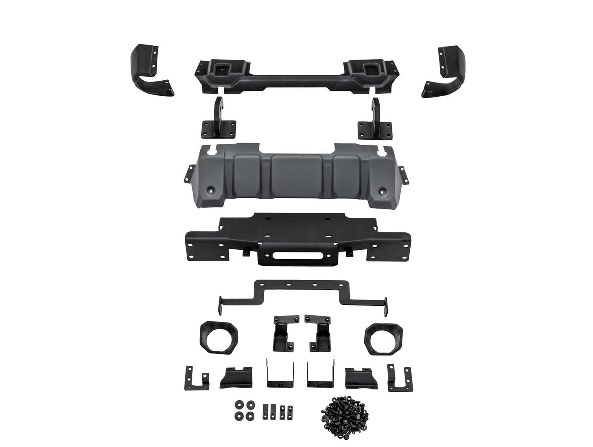 Muscular contours and chiseled facets combine with a narrow boulder-scaling profile, creating a bumper that clearly complements the overall aesthetics of the JL/ JT, rather than fighting them. The Venator's modern design features massive recovery tow hooks and a Winch tray, built-in and capable of supporting a 12,500 lb.