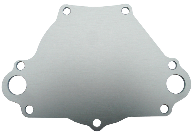 This natural finish billet aluminum backing plate is compatible with any electric water pump that mounts to the stock Chrysler timing cover. This backing plate is INCLUDED with all PROFORM Chrysler S/B Electric Water Pumps. Sold individually.