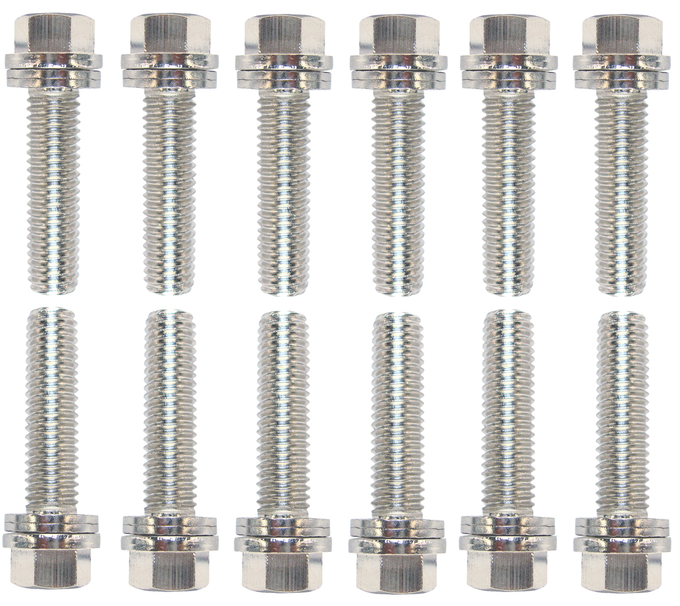 Wedge-Locking Header Bolts Hex Head M8 X .984 Inch Chevy LS Nickel Plt 12 Pcs Proform