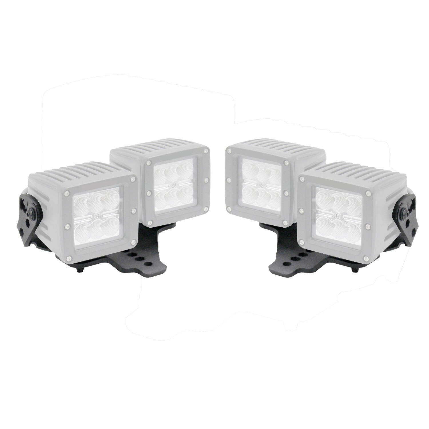Jeep Wrangler JL, JLU and JT Hood Hinge Light Mount for two 3 Inch X 3 Inch industry standard cube LED's, driver and passenger hood hinge kit. Light Mounts come with a Limited Lifetime warranty on materials and construction and a 5 year warranty on the Textured Black Finish.