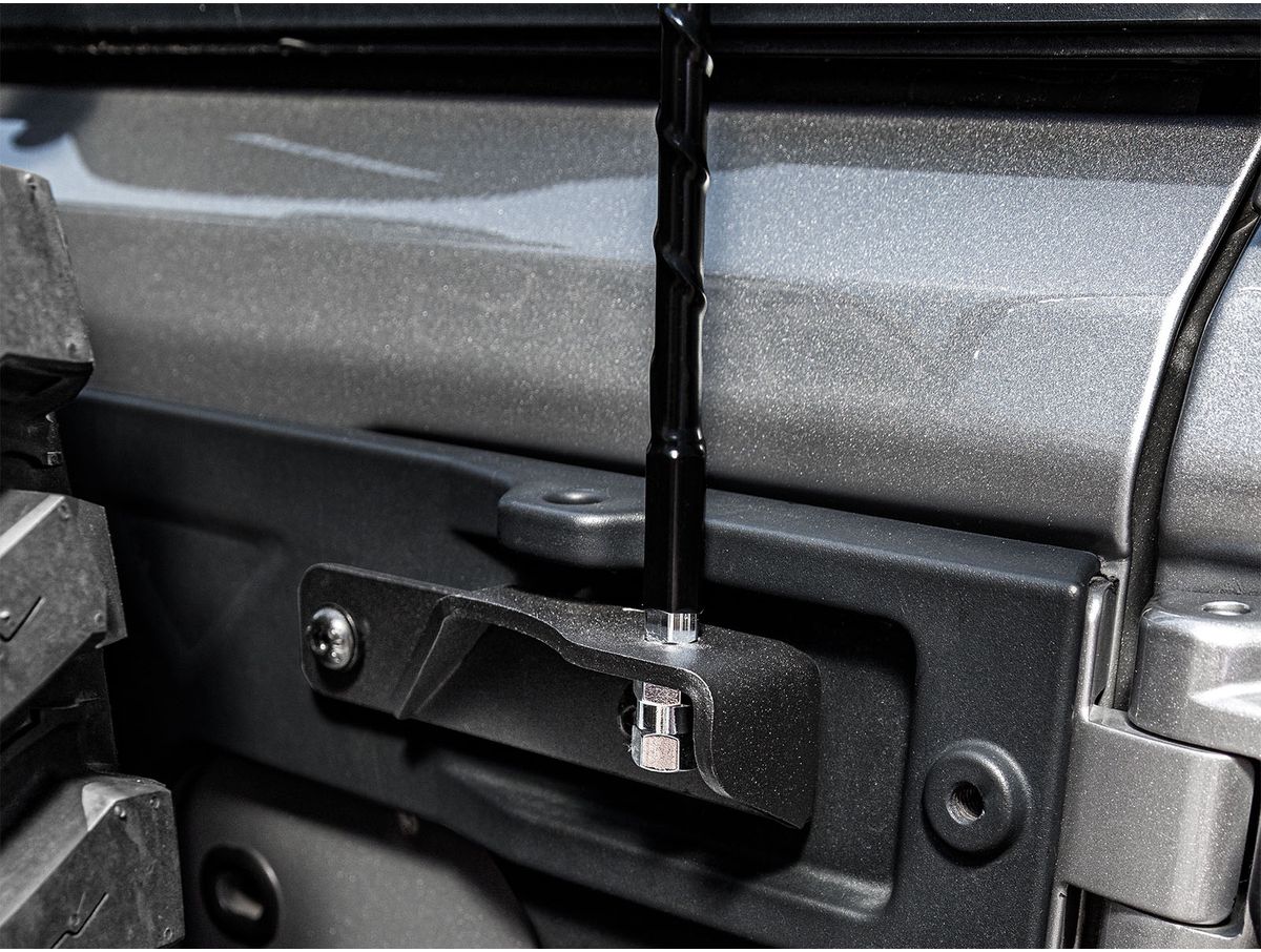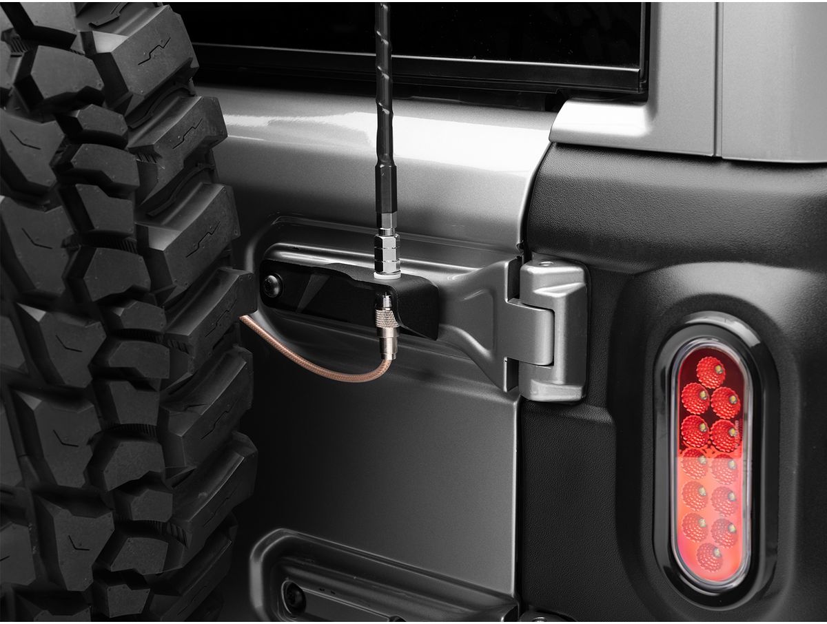 The CB Antenna Mount from Rugged Ridge gives 18-Present Wrangler JL owners a simple and practical means of mounting an aftermarket CB antenna on their rig without having to break out the drill or the duct tape. Constructed from 4mm thick plate steel and finished with a tough satin Black powder coat finish, the CB Antenna Mount bolts up neatly to the OE spare tire carrier for an appearance that's as clean as anything the factory could have created.