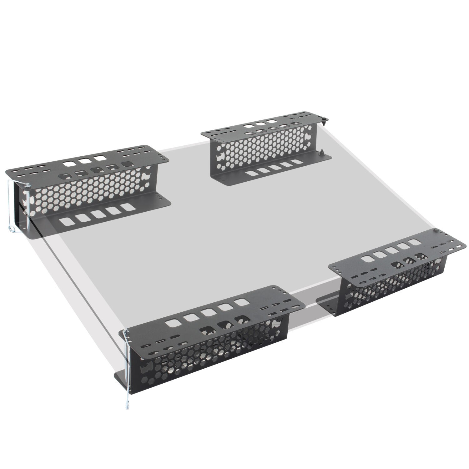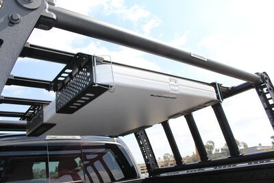 The 4-CORE system of extruded aluminum rails on Go Rhino's XRS, CEROS and SRM Series of products includes a wide variety of overlanding and trail accessories. The XRS/SRM Folding Table Brackets allow you to mount one 4-CORE-equipped product onto another, such as attaching an SRM Basket Rack on top of the XRS Xtreme Rack.