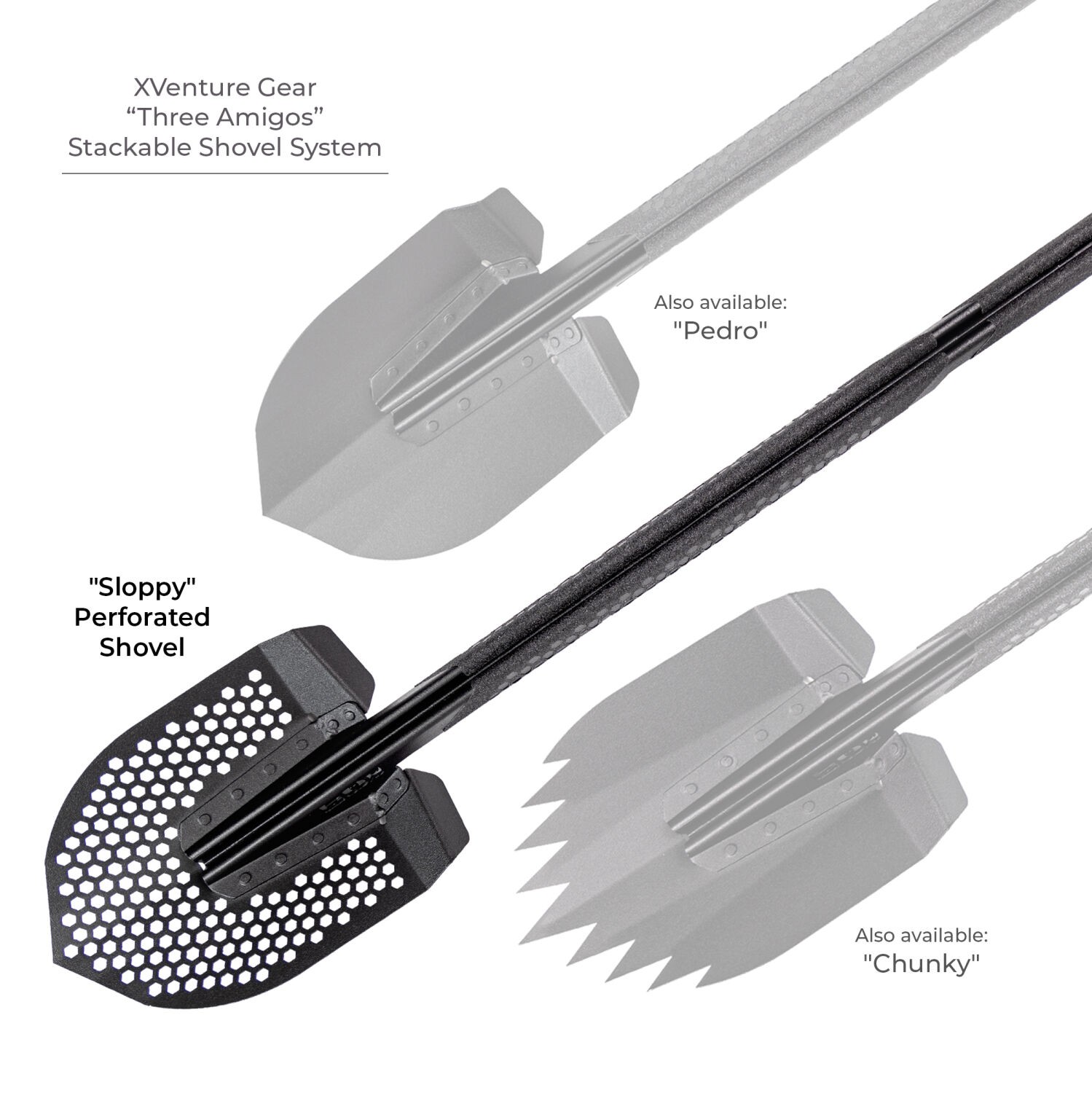 A trustworthy shovel is an essential part of any off-road adventure. The Xventure Gear Recovery Shovel SystFeatures a patent-pending stackable design that allows you to carry three task-specific shovels where you used to have space for only one.