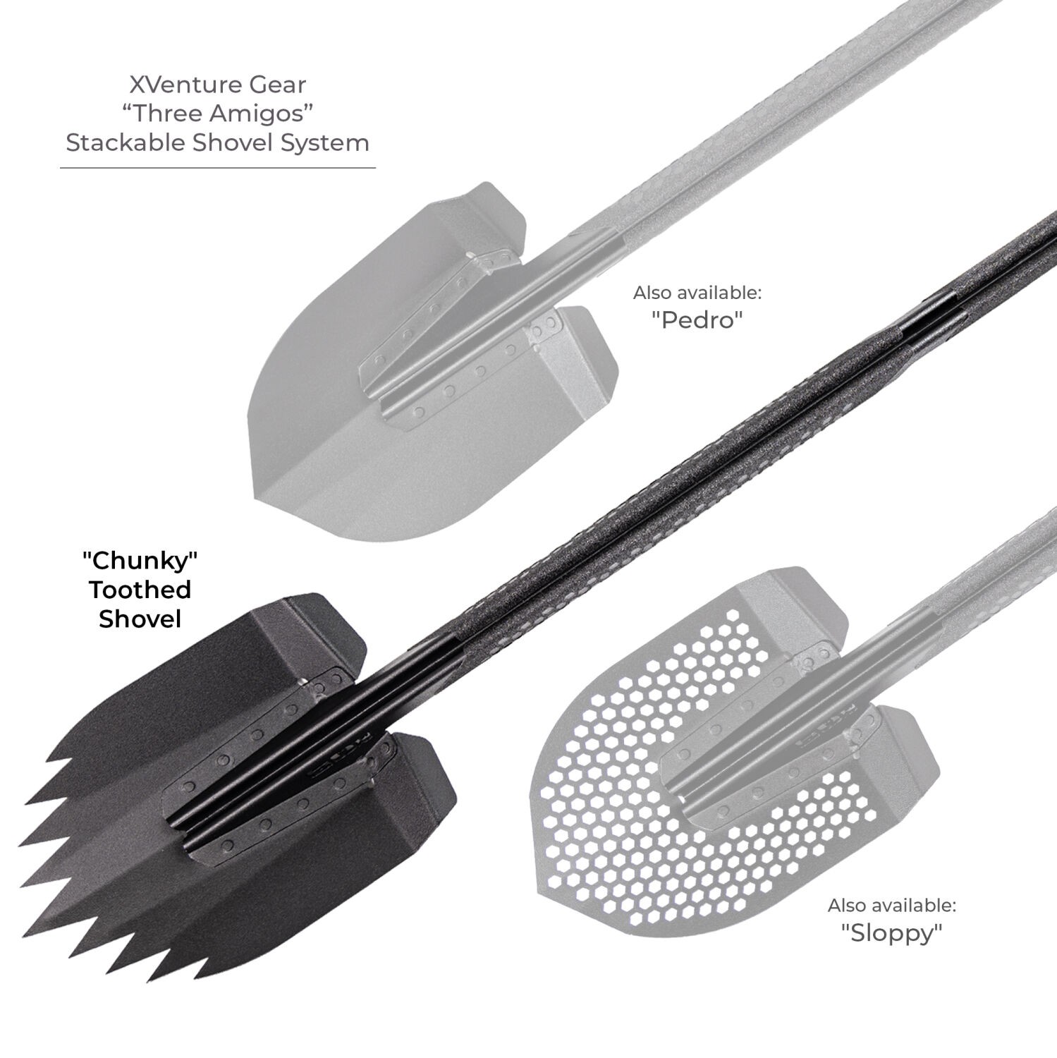 A trustworthy shovel is an essential part of any off-road adventure. The Xventure Gear Recovery Shovel SystFeatures a patent-pending stackable design that allows you to carry three task-specific shovels where you used to have space for only one.